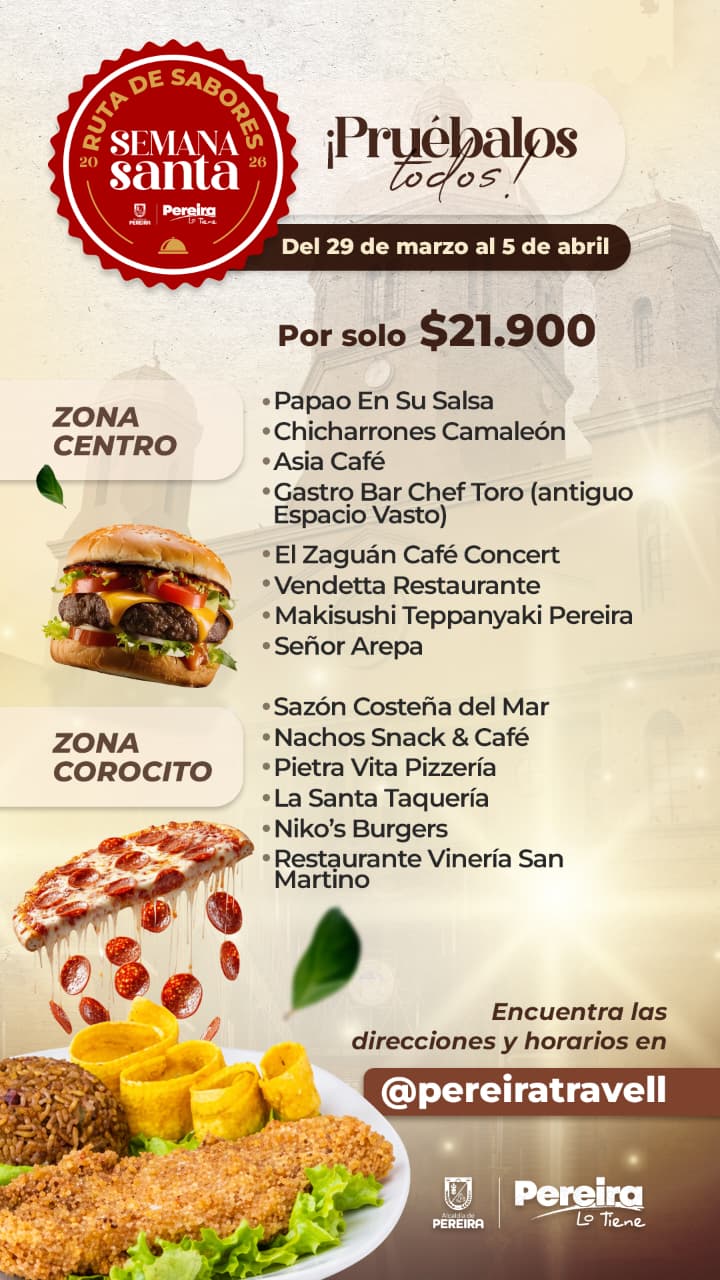 Pereira como ciudad de cruce de caminos desde la conquista ha desarrollado una gran variedad de matices, sabores y colores en su cocina; la diversidad de sus pisos térmicos y la variada cantidad de colonias cercanas y lejanas han desarrollado una fusión única como una expresión de su pluriculturalidad, convirtiendo su oferta gastronómica en un elemento diferenciador que resalta su cultura. Pereira cuenta con una infraestructura de ciudad moderna, representada, entre otros por un aeropuerto internacional, centro de exposiciones y convenciones, modernos escenarios deportivos, amplia oferta de recreación y diversión; teatros y bibliotecas, modernidad en telecomunicaciones y un amplio sistema integrado de transporte masivo que incluye el cable aéreo de servicio público más largo del país.