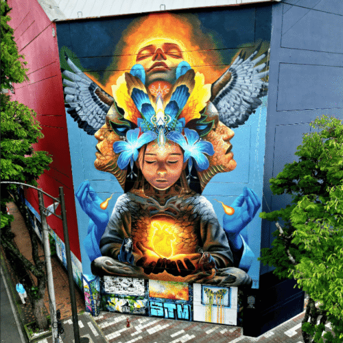 Este es un lugar creado para las expresiones artísticas y culturales y la cocina saludable, este es un espacio colaborativo y libre e histórico, una puerta y un largo pasillo de mosaicos de sol, luna y espacio estelar dan la bienvenida al visitante.