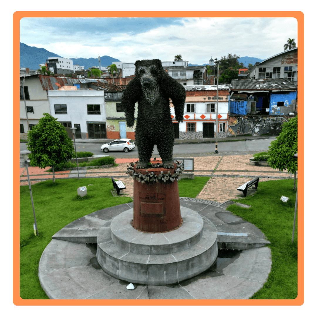 | En este parque, se instaló una escultura de un oso de anteojos de siete toneladas de peso, construido a partir de cartuchos de fusil ... | Avenida El Ferrocarril, entre las calles 13 y 14